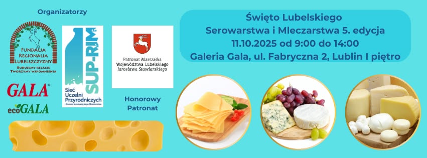 Piąta edycja Święta Lubelskiego Serowarstwa i Mleczarstwa to okazja do spotkania z producentami indywidualnymi i lubelskimi mleczarniami. W Galerii Gala czekać będą kulinarne atrakcje i degustacje, które przybliżą bogactwo regionalnych wyrobów mlecznych. To wyjątkowe święto miłośników tradycyjnych smaków.