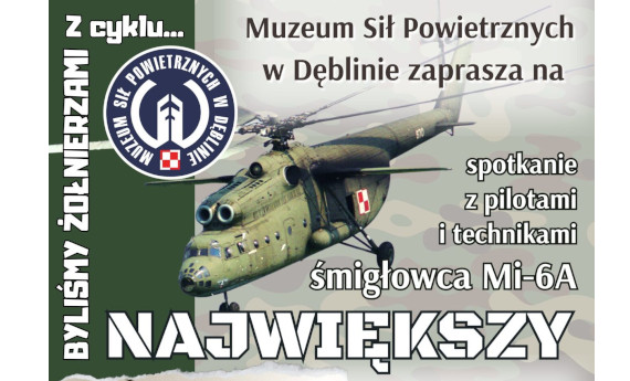 Wyjątkowe spotkanie z pilotami i technikami obsługi jedynego w Polsce śmigłowca transportowego Mi-6A "Jagiełło" w Muzeum Sił Powietrznych w Dęblinie. W ramach cyklu "Byliśmy Żołnierzami" uczestnicy poznają fascynujące historie lotów i transportów, które realizowały te imponujące maszyny, a także obejrzą prezentację historyczną opartą na materiałach archiwalnych i ikonograficznych. To okazja, by zobaczyć legendarny śmigłowiec i posłuchać opowieści jego załóg.